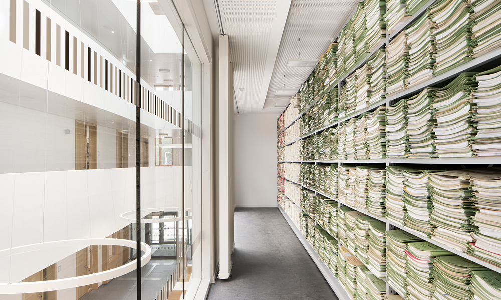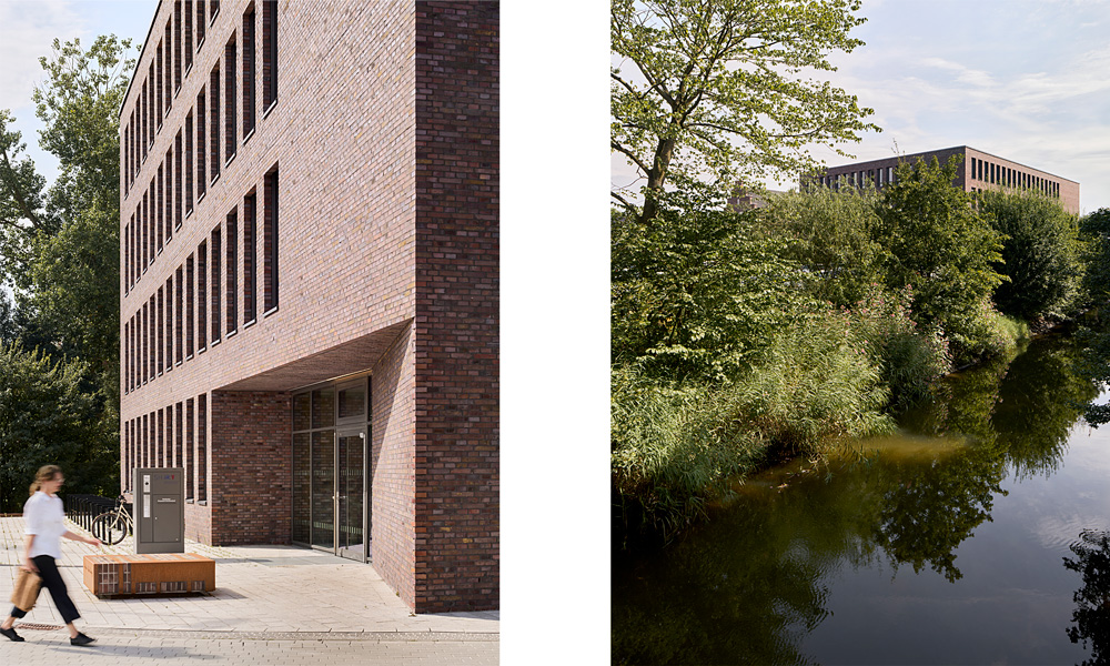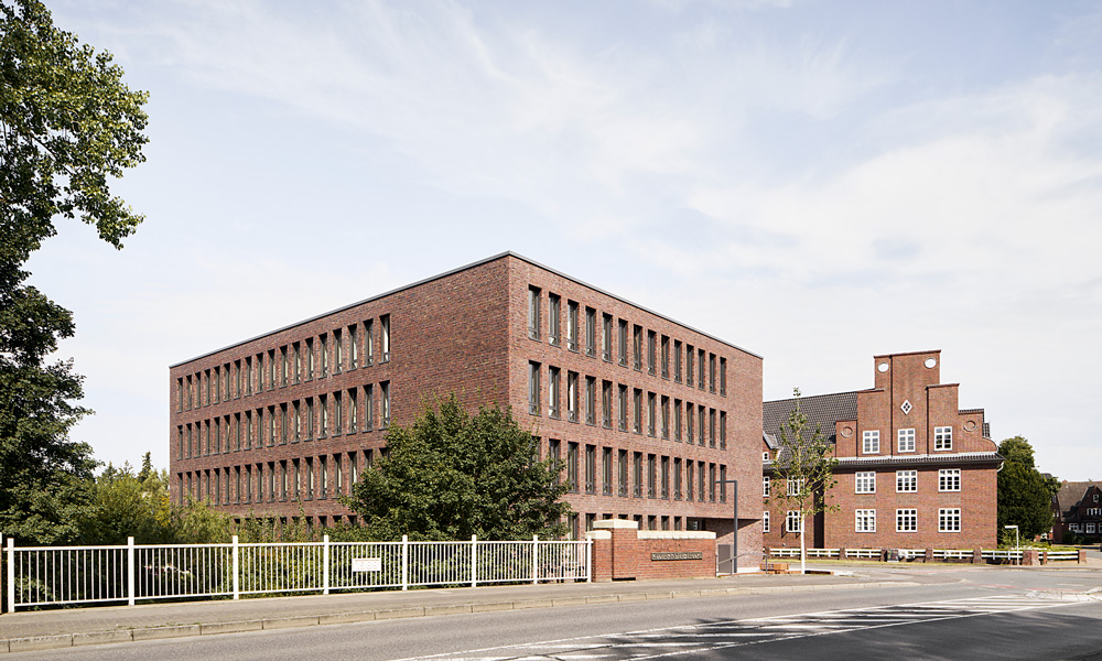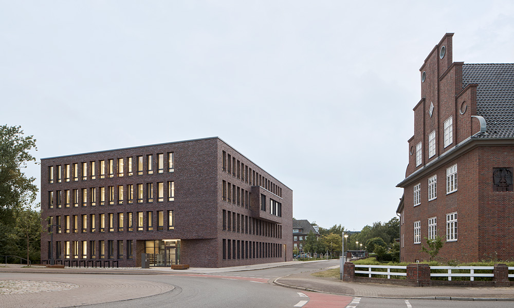 Der viergeschossige Neubau bildet das Bindeglied zwischen dem „Alten“ Finanzamt und dem Nissenhaus. Als wichtige Stadtbausteine fügen sich die drei Bauwerke zu einem raumbildenden Stadtentreé zusammen, das von der Sichtachse vom Hauptbahnhof klar erlebbar ist. Der historische Schmuckgiebel des „alten“ Finanzamtes bleibt dabei als prägnante Landmarke sichtbar, die historischen Architekturen treten mit dem modernen Baukörper in einen Dialog.